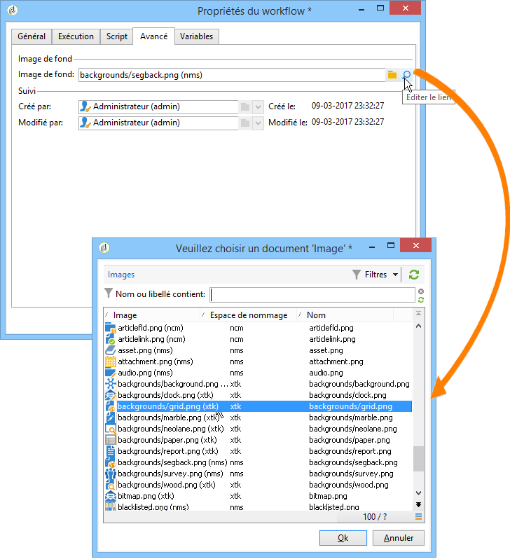Les images utilisées dans les diagrammes des différents workflows peuvent être modifiées. Elles doivent toutefois respecter certaines contraintes. Les étapes de mise en oeuvre sont les suivantes :