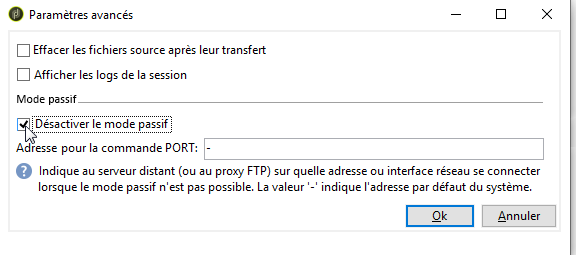Permet d'indiquer le port de connexion à utiliser pour le transfert des données.