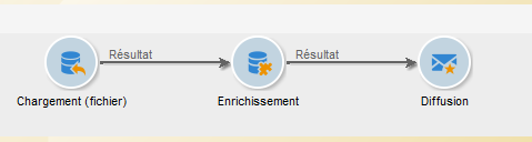 Les données de la cible sont purgées au fur et à mesure de l'exécution du workflow. Seule la dernière table de travail est accessible. Vous pouvez paramétrer le workflow pour que toutes les tables de travail restent accessibles. Pour cela, cochez l'option Conserver le résultat des populations intermédiaires entre deux exécutions dans les propriétés du workflow.