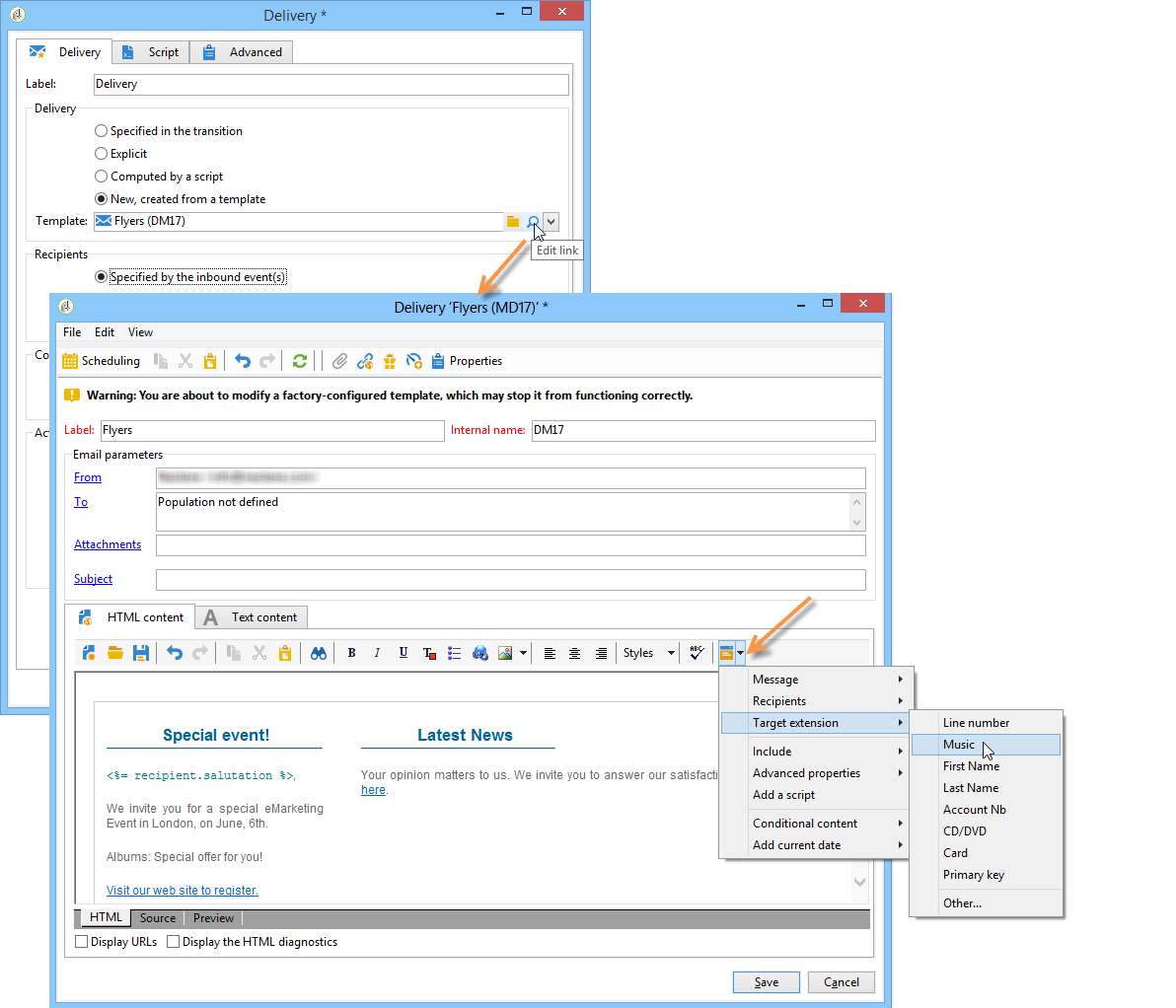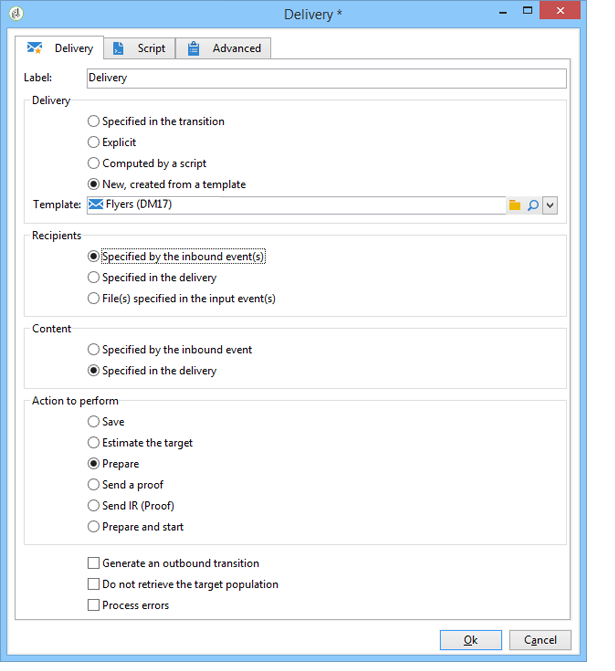 그런 다음 Delivery: 템플릿을 기반으로 작성되며 수신자는 인바운드 전환에서 지정합니다.