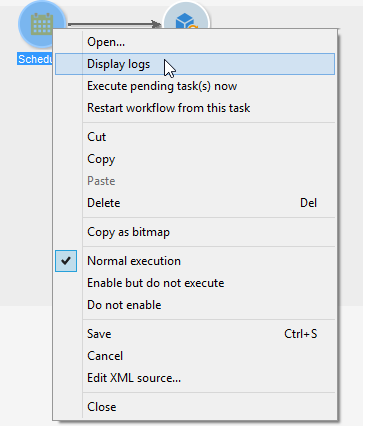 Display logs: 이 옵션을 사용하면 선택한 활동에 대한 작업 실행 로그를 볼 수 있습니다. 로그 표시를 참조하세요.