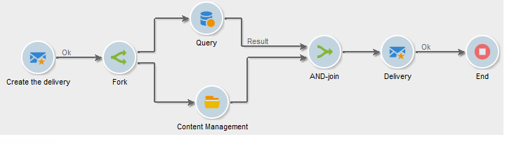 예를 들어 컨텐츠 만들기 및 게재 전송 자동화의 컨텍스트에서 AND-결합 활동을 사용하여 타겟 쿼리 및 콘텐츠 업데이트 단계가 완료된 후에만 게재를 시작할 수 있습니다. 전용 사용 사례는에서 사용할 수 있습니다. 이 섹션