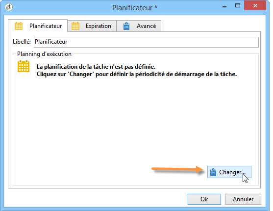 Le planificateur définit le planning d'activation de sa transition. Pour le paramétrer, double-cliquez sur l'objet graphique et cliquez sur le bouton Changer….