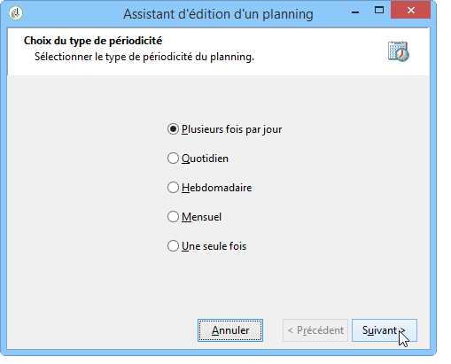 Un assistant permet de définir la fréquence et la période de validité de l'activité. Les étapes de paramétrage sont les suivantes :