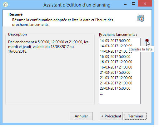 Définissez la période de validité du planning ou indiquez le nombre de fois où il sera exécuté.