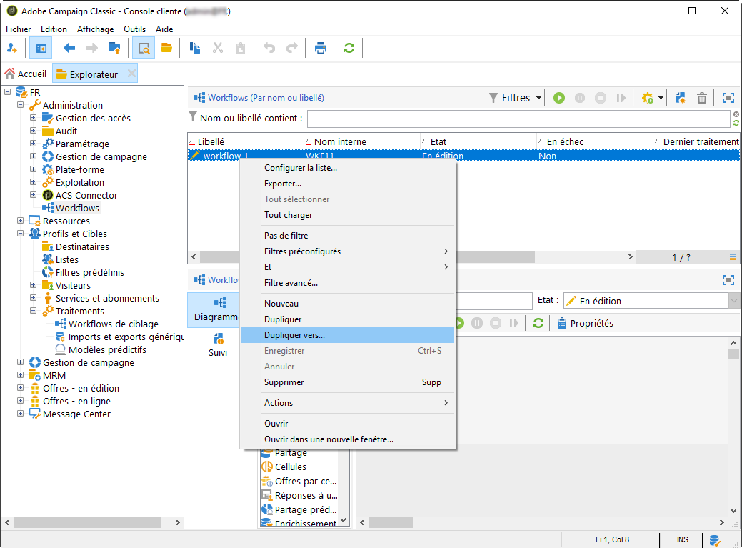 Cliquez avec le bouton droit de la souris sur un workflow.