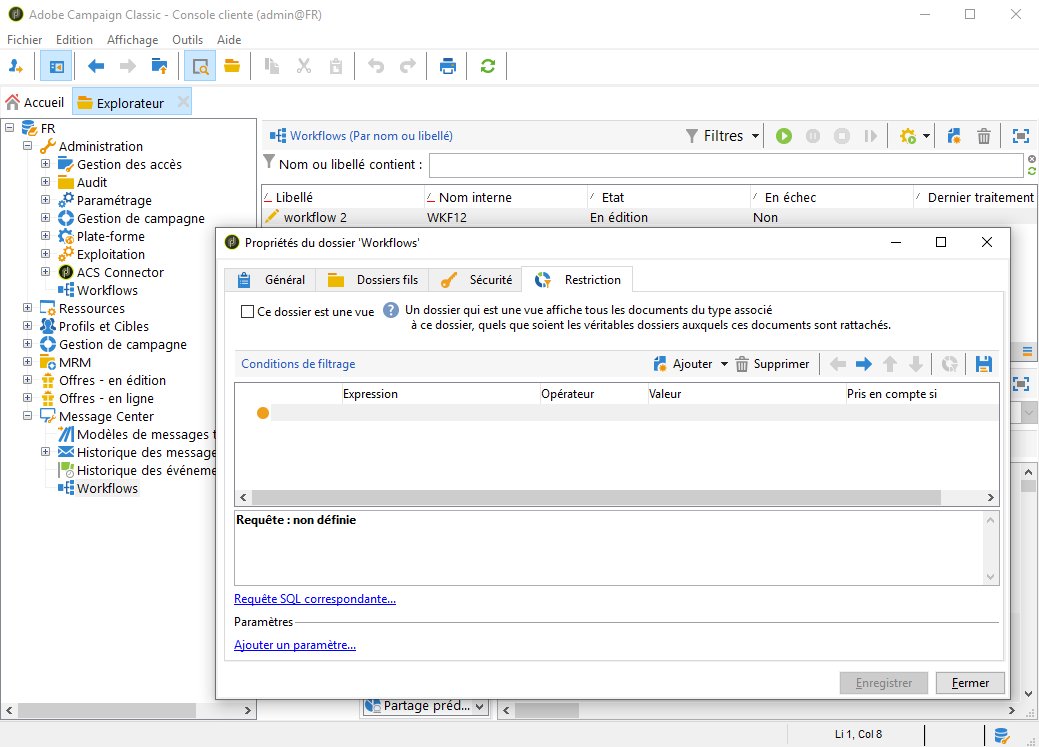 Tous les workflows des opérations sont centralisés sous le noeud Administration > Exploitation > Objets créés automatiquement > Workflows des opérations.