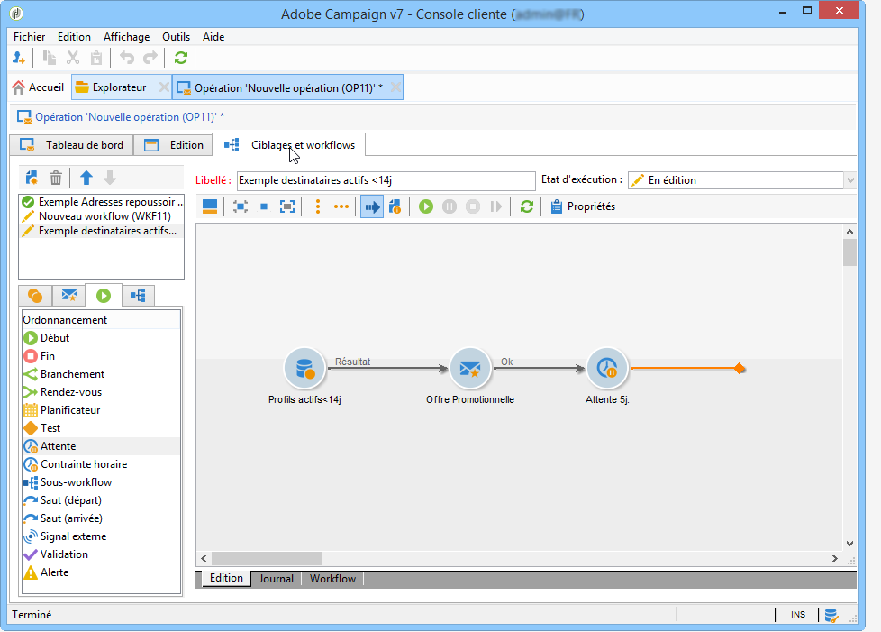 Pour chaque opération, vous pouvez créer des workflows à exécuter depuis l'onglet Ciblage et workflows. Ces workflows sont spécifiques aux opérations.