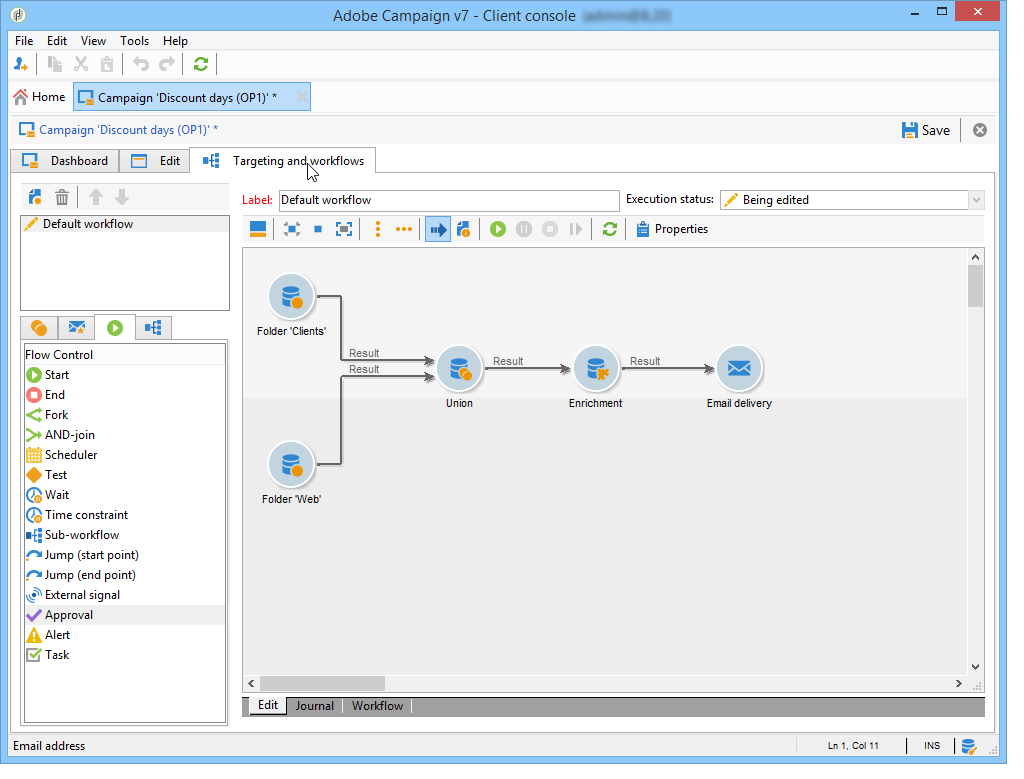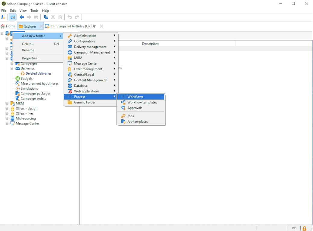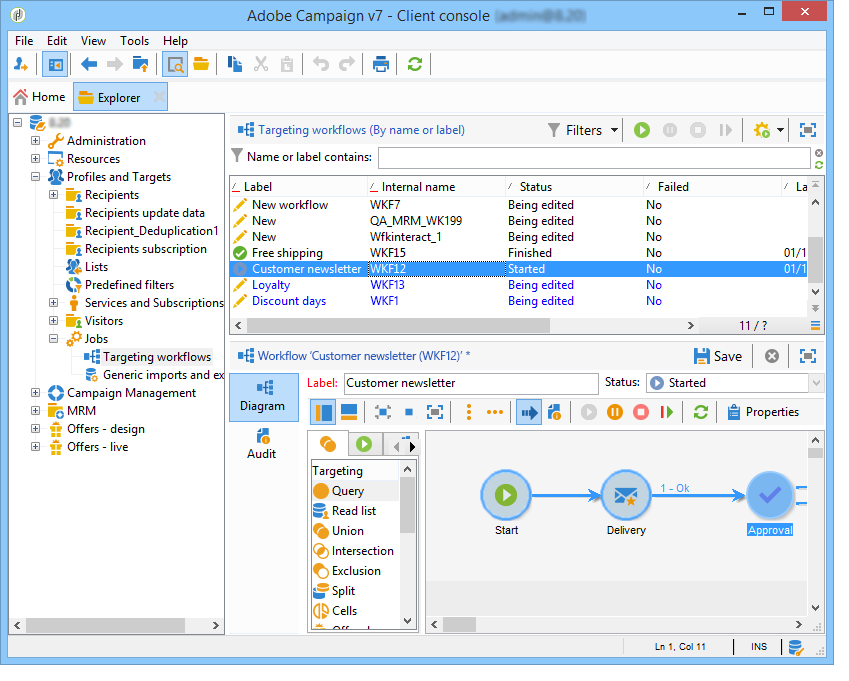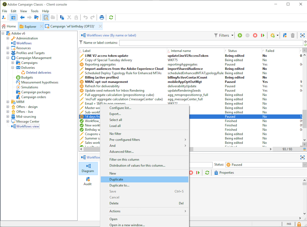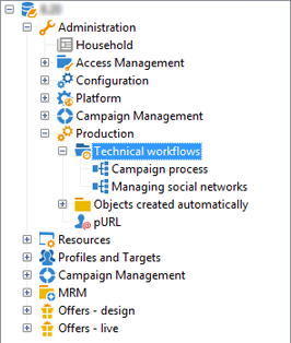 모든 캠페인 워크플로는 Administration > Production > Objects created automatically > Campaign workflows 노드에서 중앙 집중화됩니다.