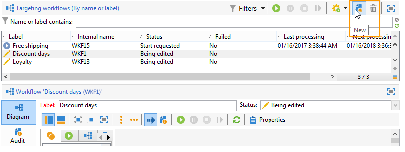 워크플로 목록 위에 있는 New 단추를 클릭합니다.