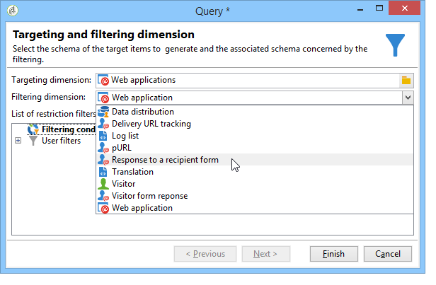 타겟팅 차원 선택 단계 동안 호환되는 필터링 차원만 인터페이스에서 제공됩니다.