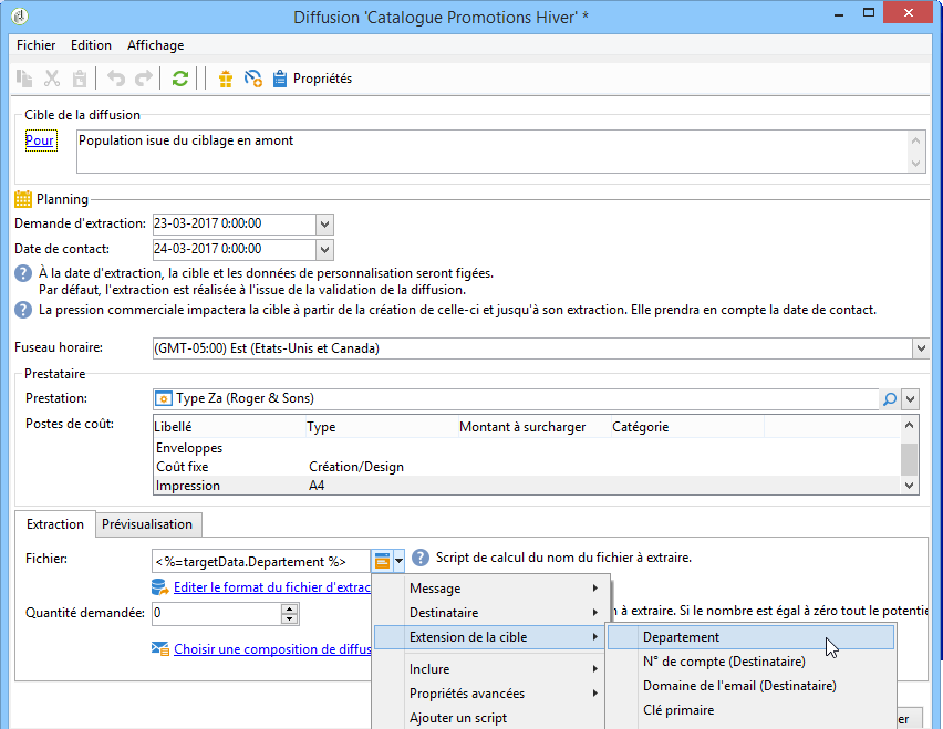 Par exemple, dans le cadre d'une diffusion courrier, vous pouvez inclure dans le fichier d'extraction les données additionnelles issues des manipulations de données réalisées dans le workflow :