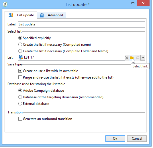 Adobe Campaign 데이터베이스 및 기존 목록의 데이터는 두 개의 전용 활동을 사용하여 업데이트할 수 있습니다.