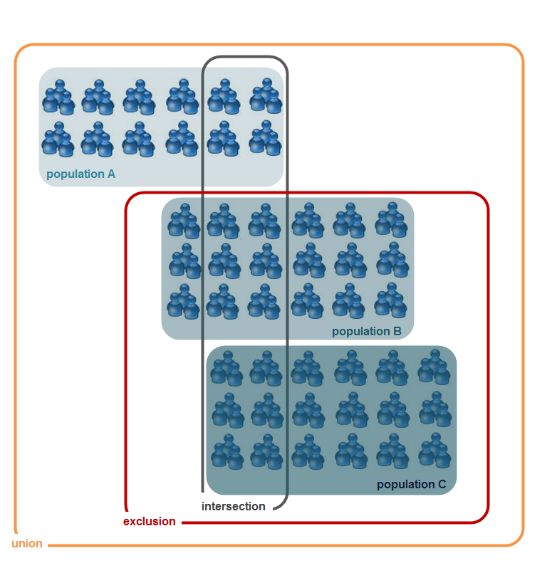 제외 활동을 사용하면 타겟의 요소를 다른 대상 모집단에서 제외할 수 있습니다. 이 활동의 출력 타깃팅 차원은 기본 세트의 차원이 됩니다.
