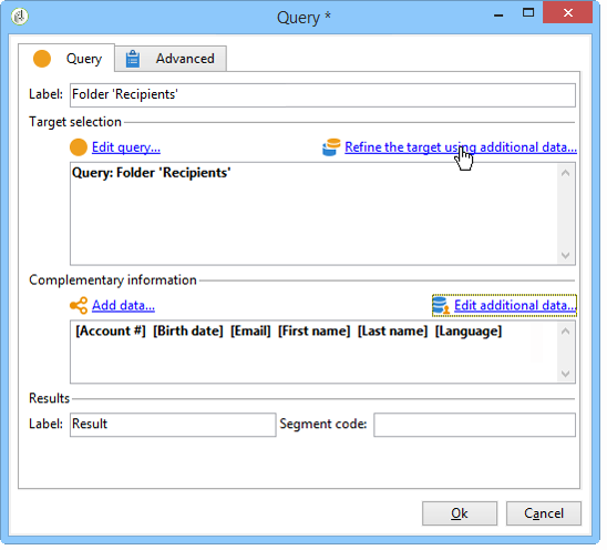 수집된 추가 데이터를 사용하면 데이터베이스에서 데이터 필터링을 세분화할 수 있습니다. 이렇게 하려면 Refine the target using additional data… 링크: 이렇게 하면 추가된 데이터를 오버필터링할 수 있습니다.