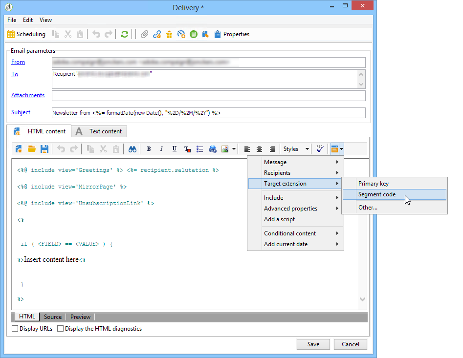 예를 들어 단일 게재 활동을 배치하고 각 수신자 세트의 세그먼트 코드를 기반으로 게재 콘텐츠를 개인화할 수 있습니다.