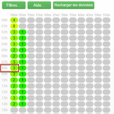 Chaque ligne représente une heure de la journée et chaque cellule, 5 minutes de cette heure.