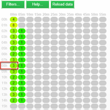 각 행은 한 시간의 시간을 나타내고 각 셀은 해당 시간의 5분을 나타냅니다.
