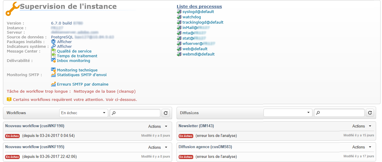 D’autres méthodes de surveillance des différents processus de Campaign sont présentées dans cette page.