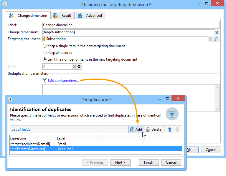 차원 변경 활동을 구성하려면 다음 단계를 적용합니다.
