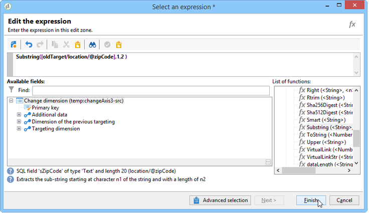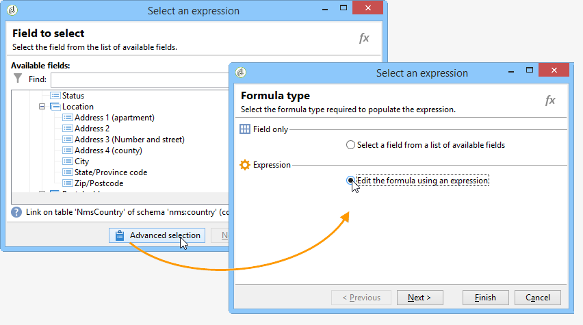 클릭 Advanced selection 및 Edit the formula using an expression.