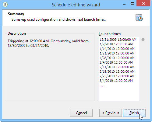 클릭 Finish 일정을 저장합니다.