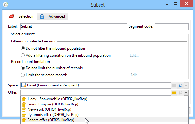 다음으로, 하위 세트에 표시할 오퍼를 선택합니다. 사용 가능한 오퍼는 이전 단계에서 선택한 오퍼 공간에서 사용할 수 있는 오퍼입니다.