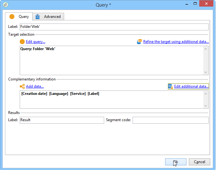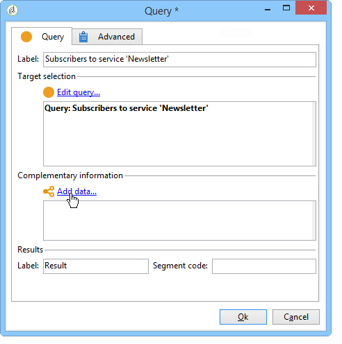A query lets you select a target according to criteria. You can associate a segment code to the query result and insert additional data into it.