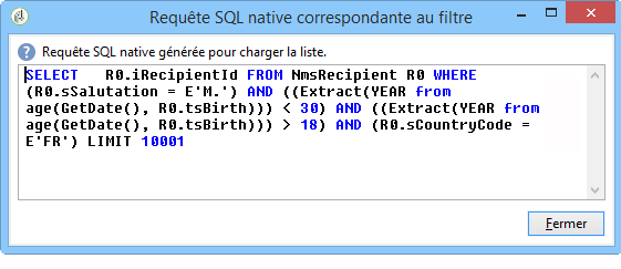 Vous pouvez visualiser le code SQL correspondant à votre combinaison de critères :