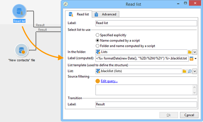 처리할 목록을 명시적으로 지정하거나, 스크립트로 계산하거나, 동적으로 현지화할 수 있습니다. 이는 Read list 활동.