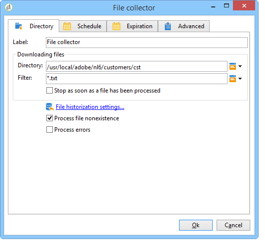 다음 파일 수집기 활동을 통해 소스 디렉토리에 파일이 없는 것을 관리할 수 있습니다. 이렇게 하려면 Process file nonexistence 선택 사항입니다. 이 워크플로우에서는 대기 수집 시 디렉터리에서 누락된 경우 다른 파일 컬렉션을 시도하기 위해 활동이 추가되었습니다.