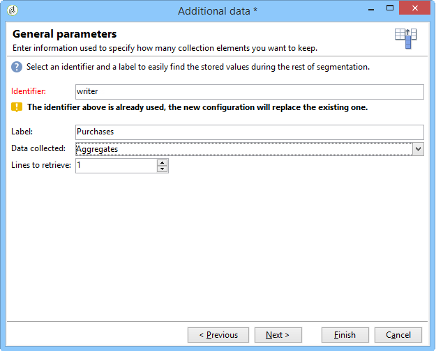 변경 Collected data 필드를 선택하여 Aggregates 선택 사항입니다.