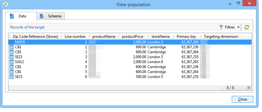 요약 목록을 준비하려면 "구매" 필드와 첫 번째 데이터 보강 필드에서 필드를 추가해야 합니다. "ZipCode 참조" 필드입니다.