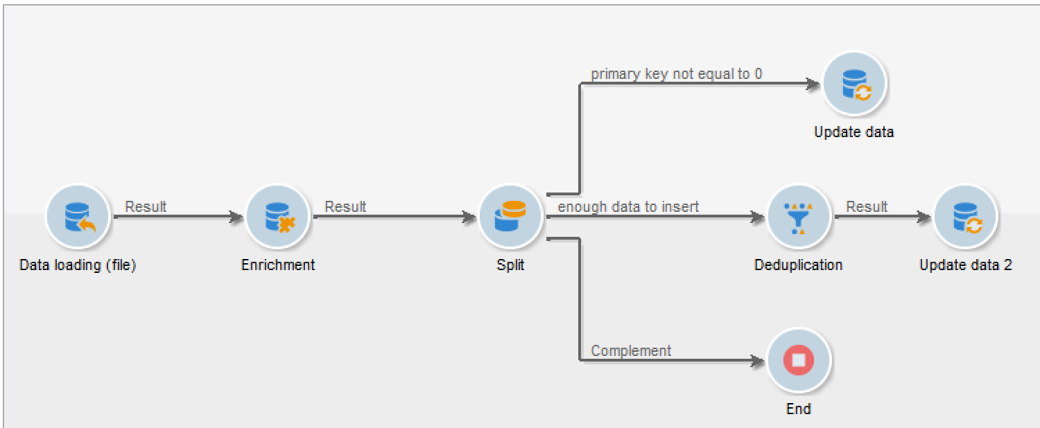 구성 Update data 활동 뒤에 있음 Deduplication 활동이 이전에 구성되었습니다.