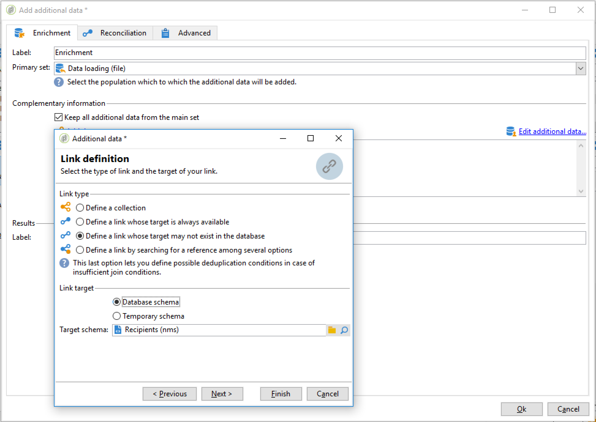 에서 General 활동의 탭에서 을 선택합니다 Use the additional data only 을 필터링 설정으로 지정하고 Targeting dimension 은(는) 자동으로 Enrichment.