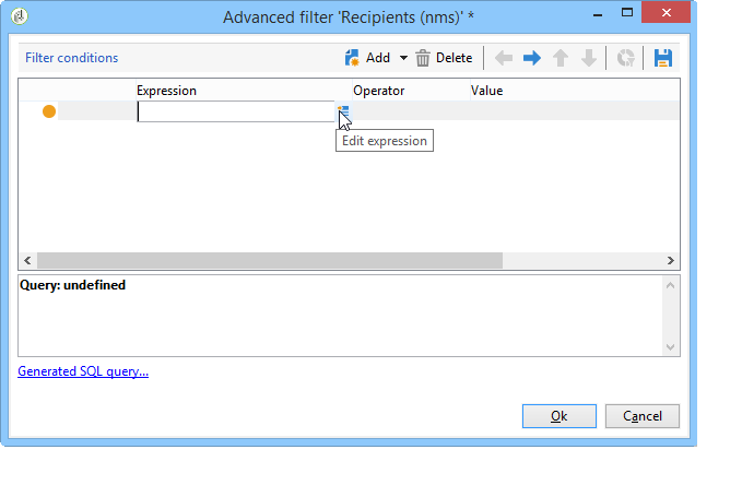 의 첫 번째 셀을 클릭합니다 Expression 열 및 클릭 Edit expression 표현식 편집기를 엽니다.