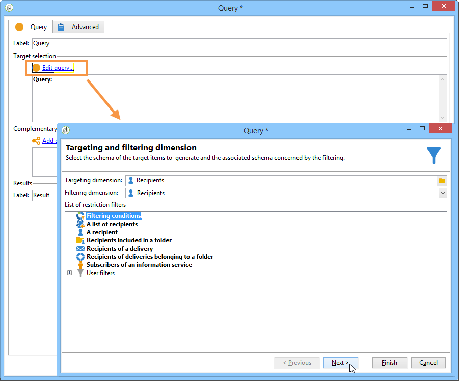 을(를) 클릭합니다. 쿼리 편집 링크 및 선택 Filtering conditions.