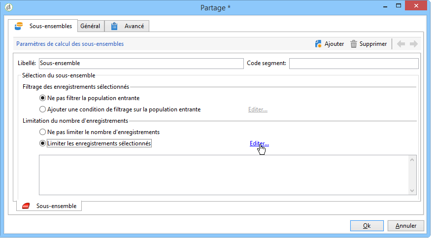 Dans la section Limitation du nombre d'enregistrements, sélectionnez l'option Limiter les enregistrements sélectionnés et cliquez sur le lien Editer.