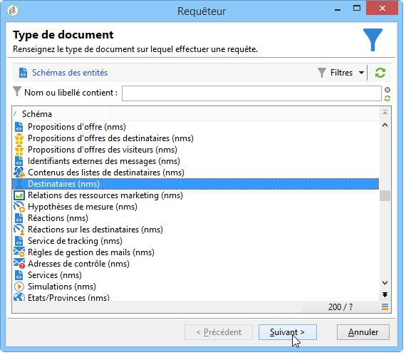 Ouvrez le Requêteur générique et choisissez la table des Destinataires (nms:recipient).