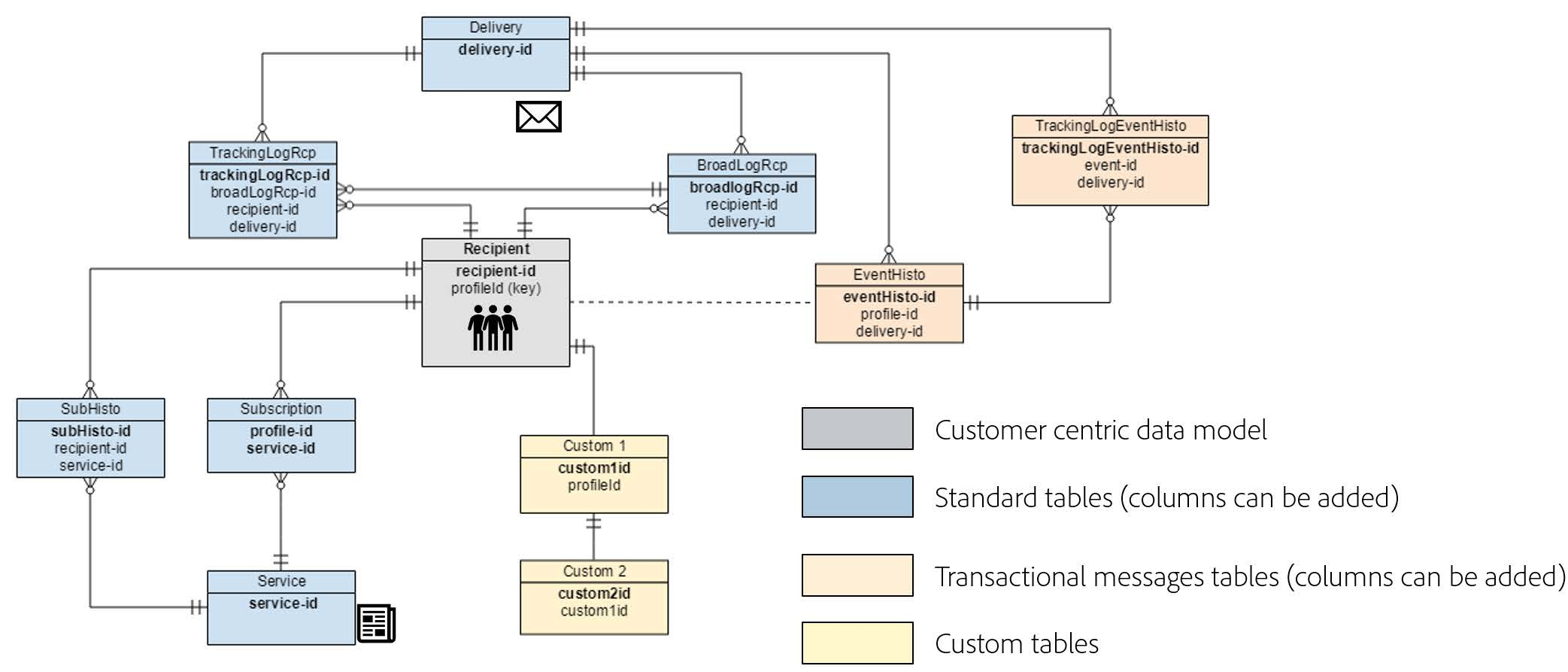 Adobe Campaign 기본 데이터 모델은 이 문서.