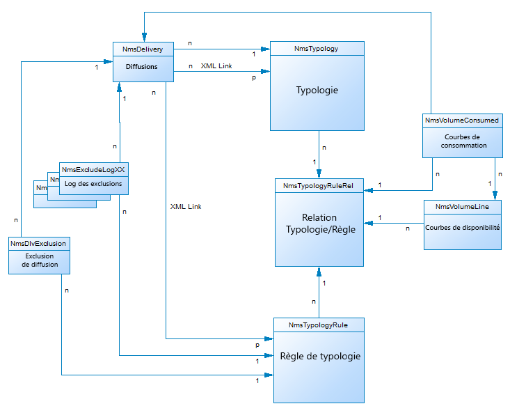 Cet ensemble de tables, lié au module Optimisation des campagnes, permet de contrôler, de filtrer et de surveiller l’envoi des diffusions. Pour plus d'informations, consultez la section À propos des typologies de campagne.