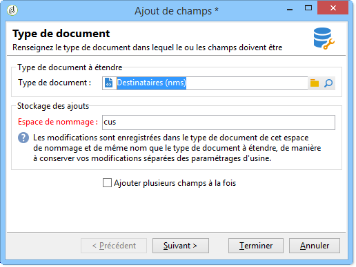 Cet assistant à l'avantage d'ajouter rapidement un champ sans avoir à connaître la structure d'un schéma de données.