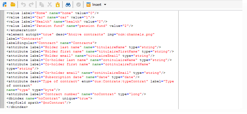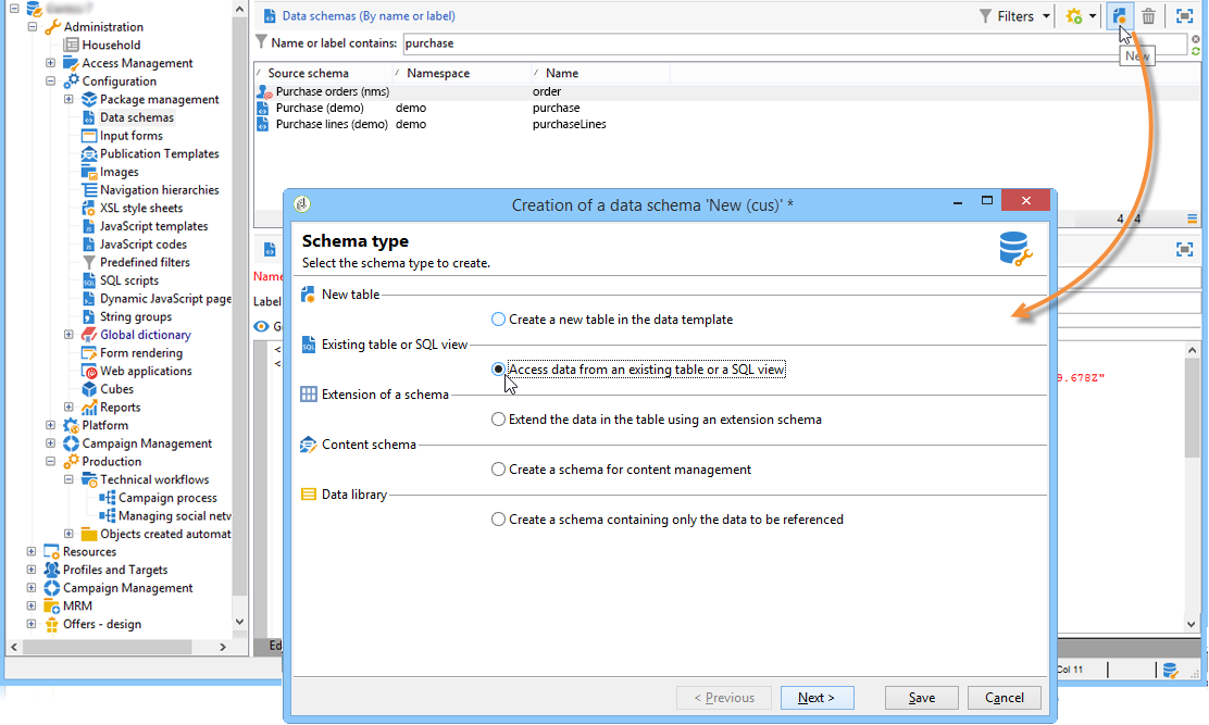 편집 Administration>Configuration>Data schemas Adobe Campaign 트리의 노드를 클릭하고 New .