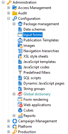 입력 양식에 액세스하려면 Administration> Configuration >Input forms 메뉴에서: