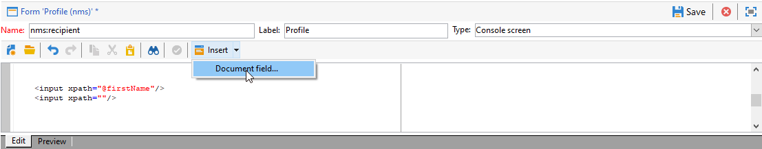 예를 들어 입력 필드를 삽입하려면 <input> 요소를 생성하지 않습니다. 설정 xpath 속성을 XPath 식으로 지정합니다. 자세한 내용.