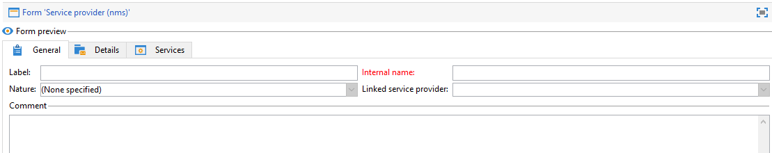 <form entitySchema="xtk:form" name="Service provider" namespace="nms" type="iconbox" xtkschema="xtk:form">