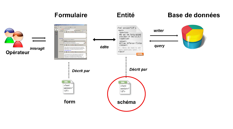Un schéma est un document XML associé à une table de la base de données, il définit la structuration des données et décrit la définition SQL de la table :