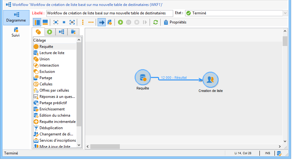 Pour créer une liste de type Liste basée sur la nouvelle table des destinataires, vous devez créer un workflow de ciblage qui va générer la liste.