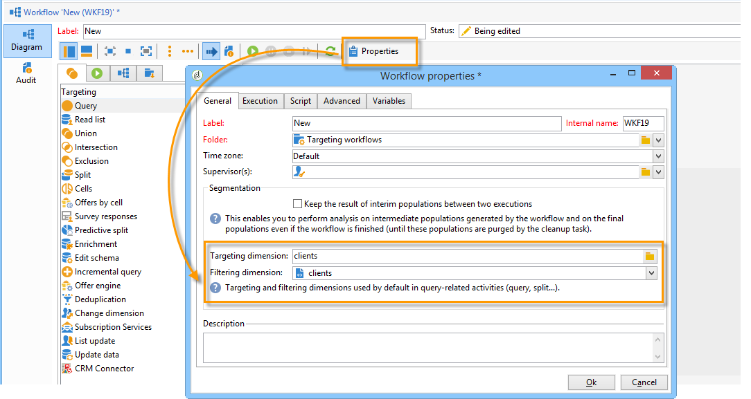 최근에 만든 템플릿을 기반으로 새 워크플로우를 기반으로 개인화된 테이블이 워크플로우의 전역 타겟팅 및 필터링 차원에 대해 기본적으로 선택됩니다.