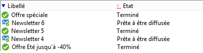 Pour trier les enregistrements d'une liste depuis la console cliente, il est préférable, en termes de performances, de trier sur des champs indexés. La déclaration d'un index dans un schéma provoque, dans la console, l'affichage des champs indexés avec un trait rouge sous la flèche de tri située à gauche du libellé de la colonne, comme dans l'écran ci-dessous :
